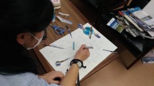 今日は、今期最後のイベント「コラージュ」の開催です。最後の作品やーと言いながら取り組む生徒さんや卒業後の不安や夢を語り合う生徒さん。