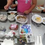 昼食は、子どもに調理をお手伝いしてもらい、お決まりのメニューのおにぎらずと具だくさんの豚汁です。